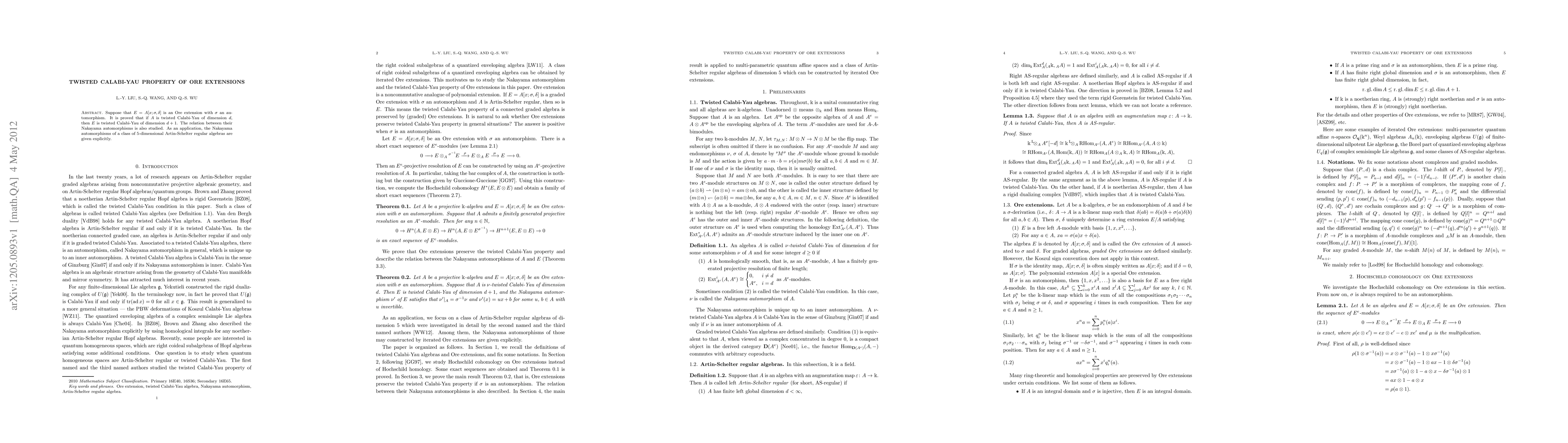 This research paper proves that an Ore extension of a twisted Calabi-Yau algebra is also twisted Calabi-Yau with one dimension higher, and provides explicit Nakayama automorphisms for certain 5-dimensional algebras.