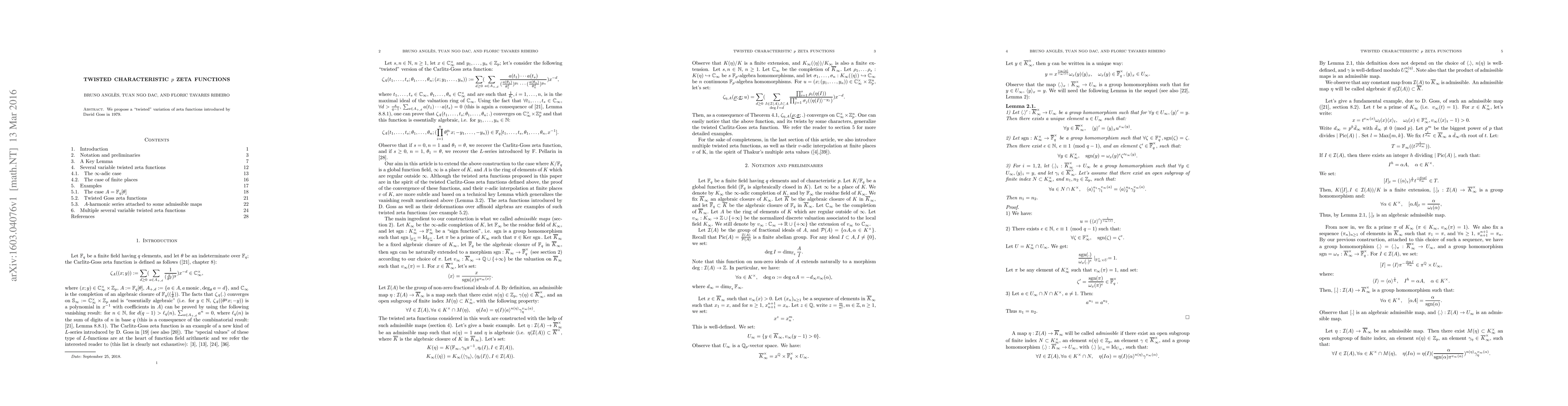 Summary: This paper introduces a novel "twisted" variation of David Goss's 1979 zeta functions, aiming to extend their properties and applications in number theory. The proposed twist seeks to explore new mathematical insights and potential uses in the field.