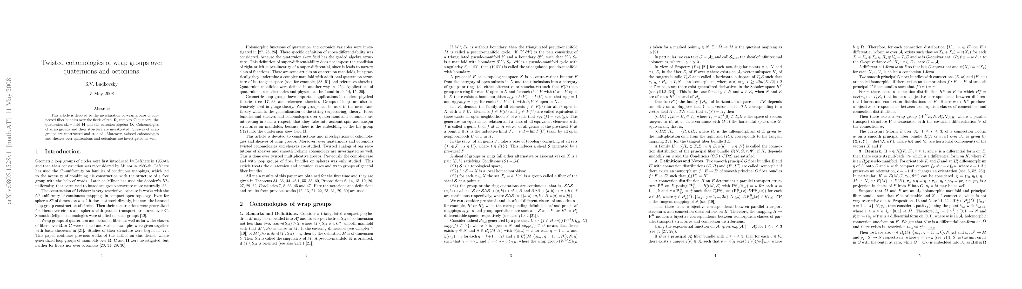 This paper explores the wrap groups of connected fiber bundles over real, complex, quaternion, and octonion fields, focusing on their cohomology structures and constructing sheaves of these groups. It further delves into twisted cohomologies specifically over quaternions and octonions.
