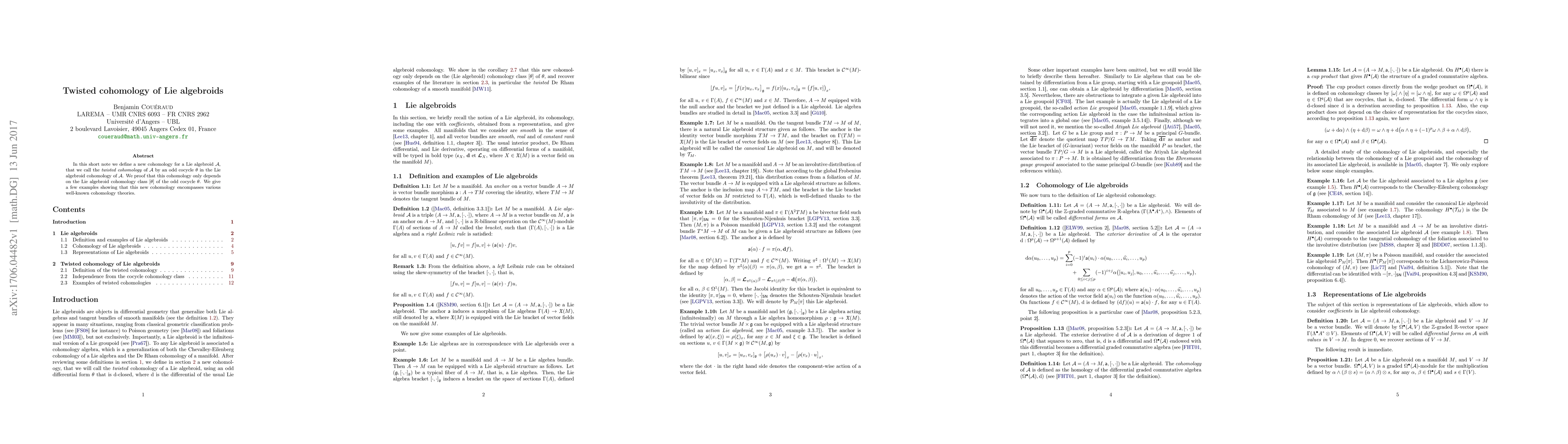 This paper introduces a new cohomology theory, termed twisted cohomology, for Lie algebroids $\mathcal{A}$ based on odd cocycles. The authors prove that this cohomology depends solely on the cohomology class of the cocycle and demonstrate its connections to established cohomology theories.