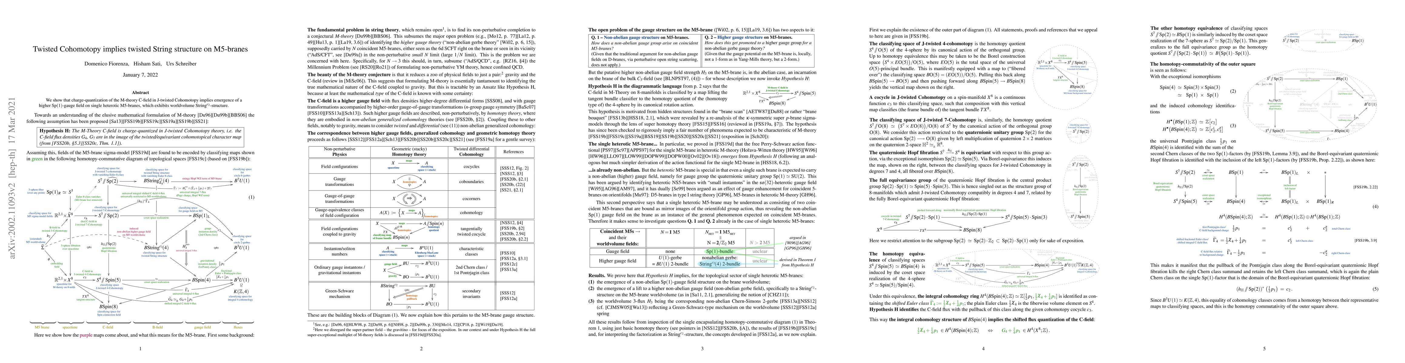 This paper demonstrates that the quantization of the M-theory C-field in J-twisted Cohomotopy leads to the emergence of a higher Sp(1)-gauge field on heterotic M5-branes, endowing them with a twisted String structure.