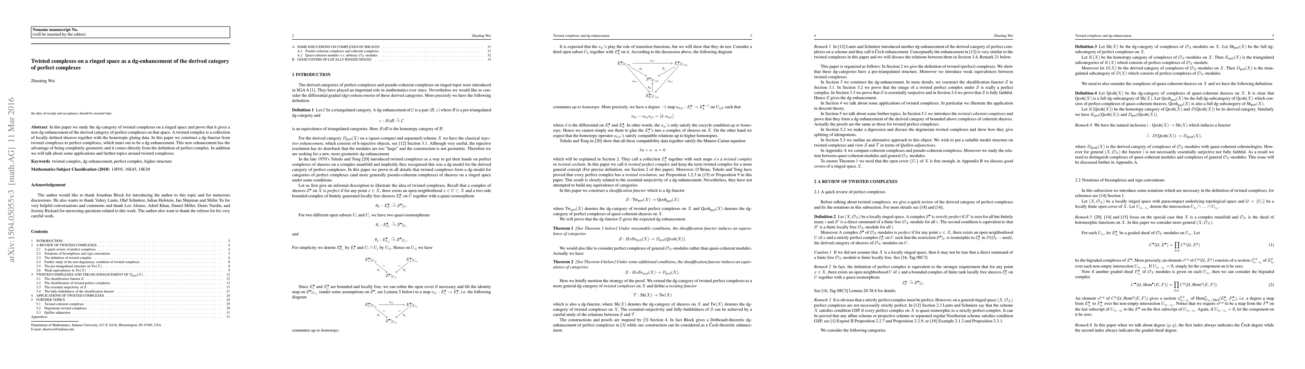 This paper introduces twisted complexes on a ringed space as a new dg-enhancement of the derived category of perfect complexes. It constructs a dg-functor from twisted complexes to perfect complexes, demonstrating a geometric and direct enhancement.