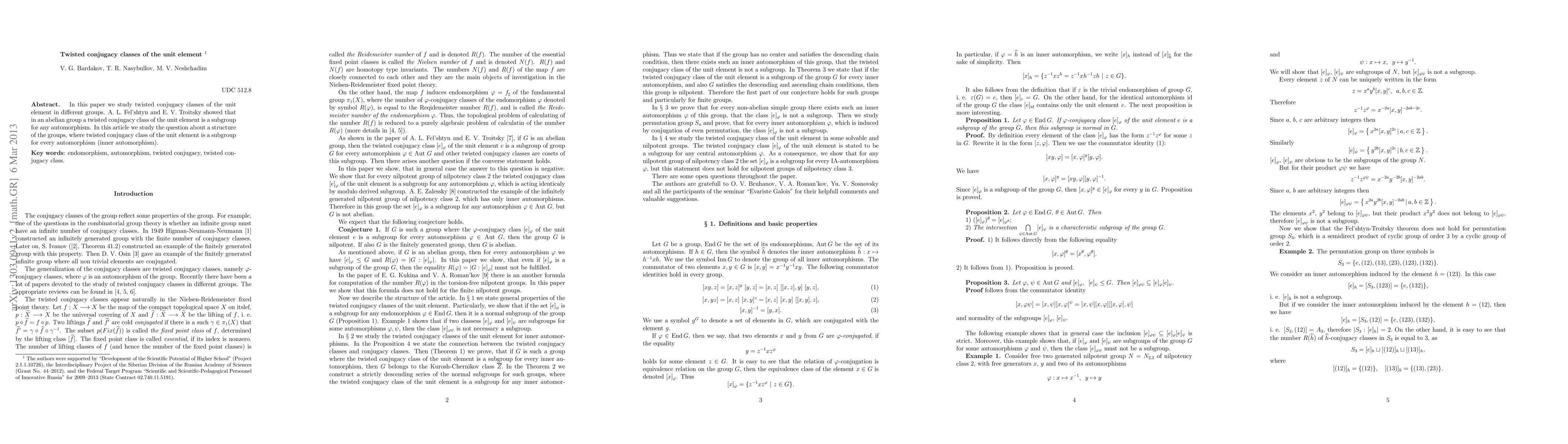 Summary: This paper explores the twisted conjugacy classes of the unit element in various groups, building on previous work by Fel'shtyn and Troitsky that identified these classes as subgroups in abelian groups. It further investigates groups where the twisted conjugacy class of the unit element remains a subgroup under every automorphism, particularly focusing on inner automorphisms.
