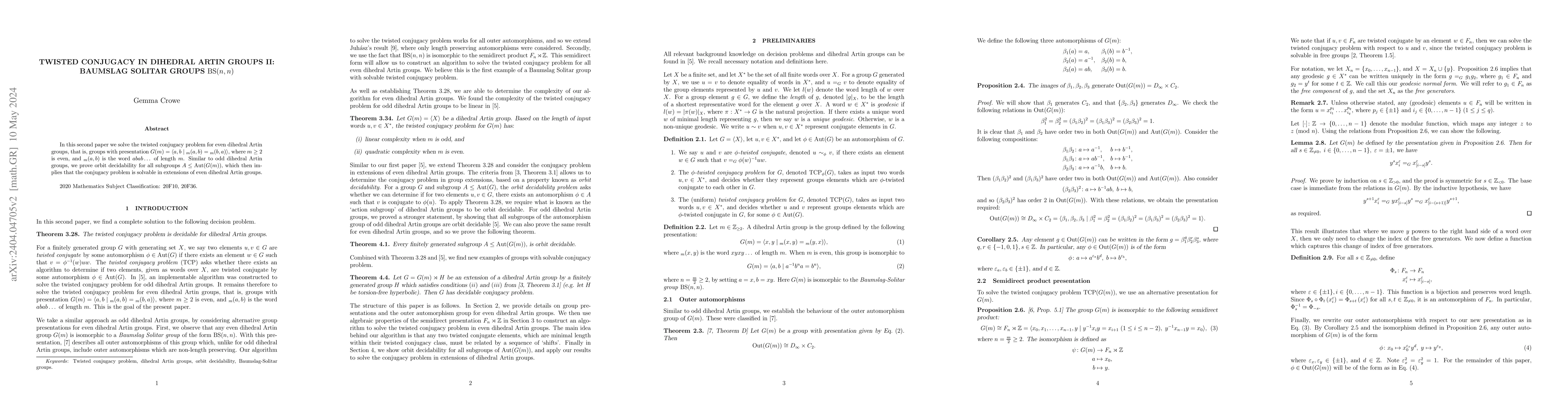 This paper resolves the twisted conjugacy problem for even dihedral Artin groups, specifically $\mathrm{BS}(n,n)$, proving orbit decidability for all subgroups of their automorphism group, which consequently makes the conjugacy problem solvable in their extensions.