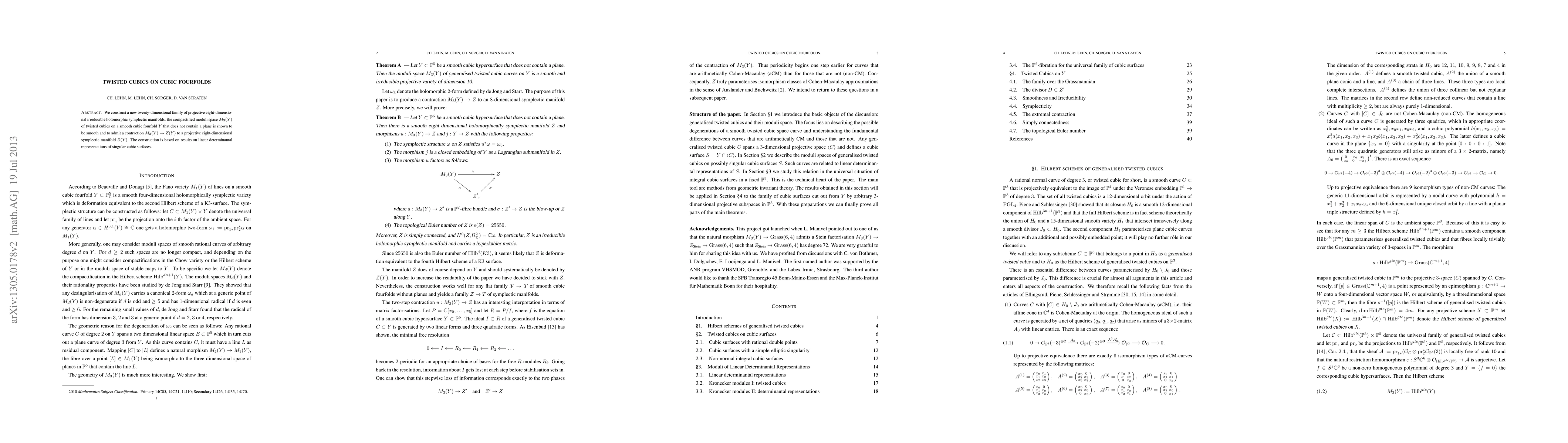 This paper constructs a new twenty-dimensional family of eight-dimensional irreducible holomorphic symplectic manifolds by compactification of the moduli space of twisted cubics on cubic fourfolds, demonstrating a smooth contraction to a symplectic manifold, utilizing results from linear determinantal representations of singular cubic surfaces.