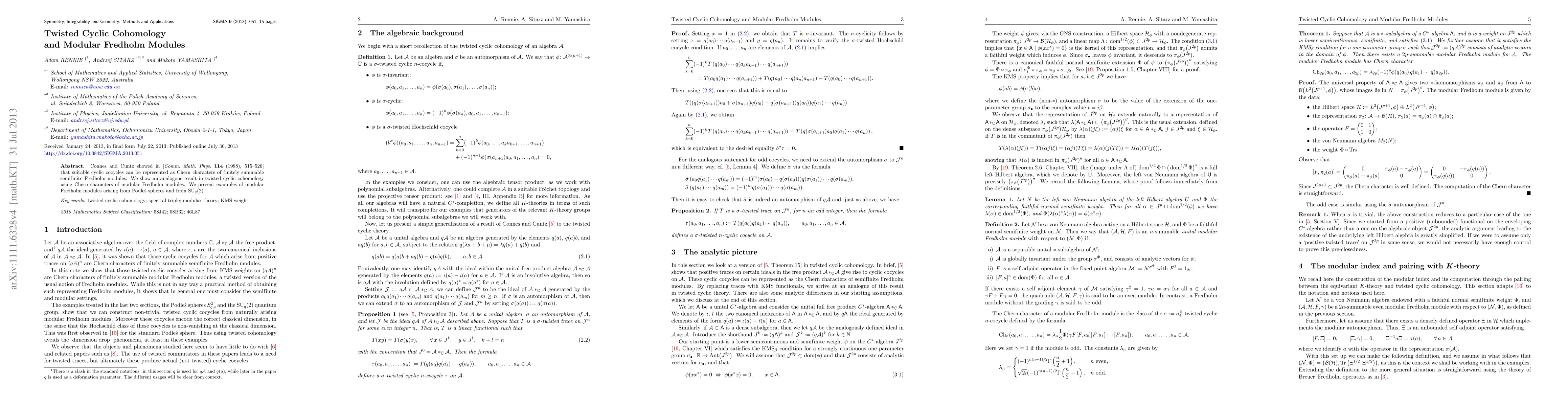 Researchers connect twisted cyclic cohomology to Chern characters of modular Fredholm modules, providing a new approach to understanding certain mathematical structures.