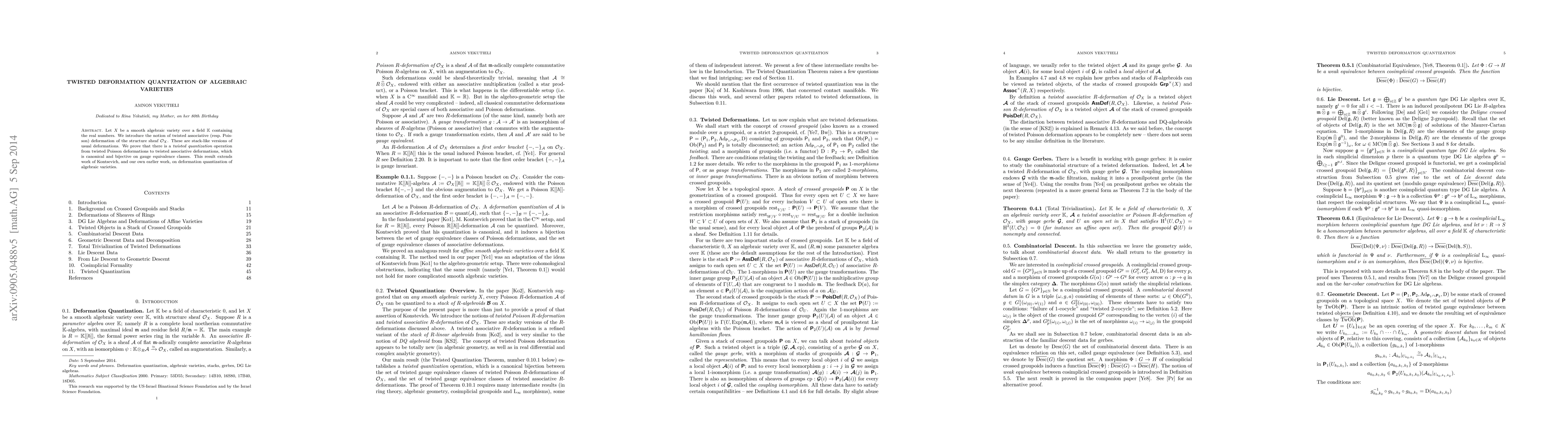 This paper introduces twisted deformation quantization for algebraic varieties, establishing a canonical bijection between twisted Poisson and associative deformations, extending prior work by Kontsevich and the authors.