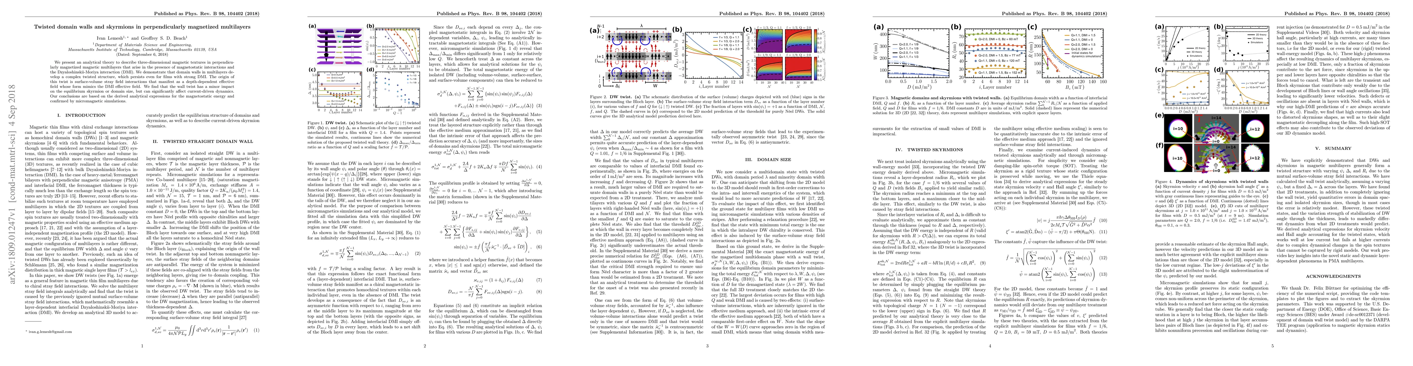 This paper develops an analytical theory for twisted domain walls and skyrmions in perpendicularly magnetized multilayers, showing that surface-volume stray field interactions create a depth-dependent effective field mimicking the Dzyaloshinskii-Moriya interaction. The twisted domain walls' minor effect on equilibrium skyrmion size contrasts with their significant influence on current-driven dynamics, as demonstrated by analytical and simulation results.