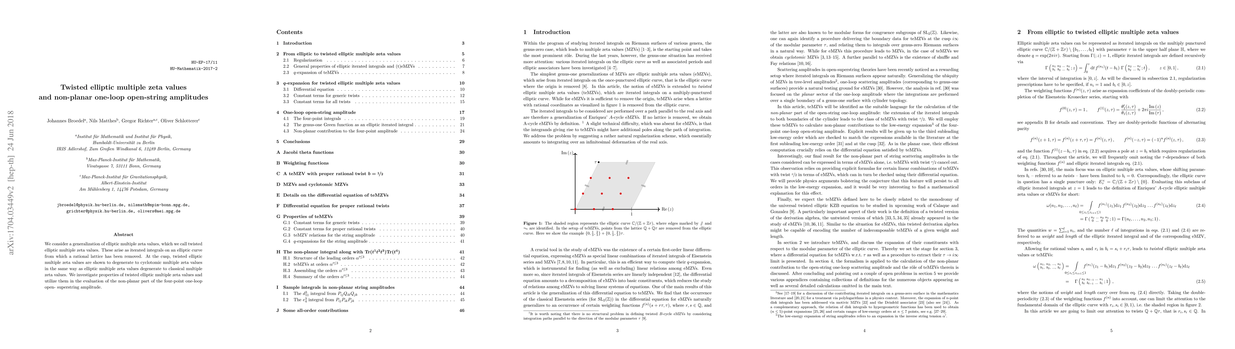 Summary: This paper introduces twisted elliptic multiple zeta values, a generalization of elliptic multiple zeta values arising from iterated integrals on an elliptic curve with a rational lattice removed. It explores their properties and connects them to the non-planar part of four-point one-loop open-string amplitudes.
