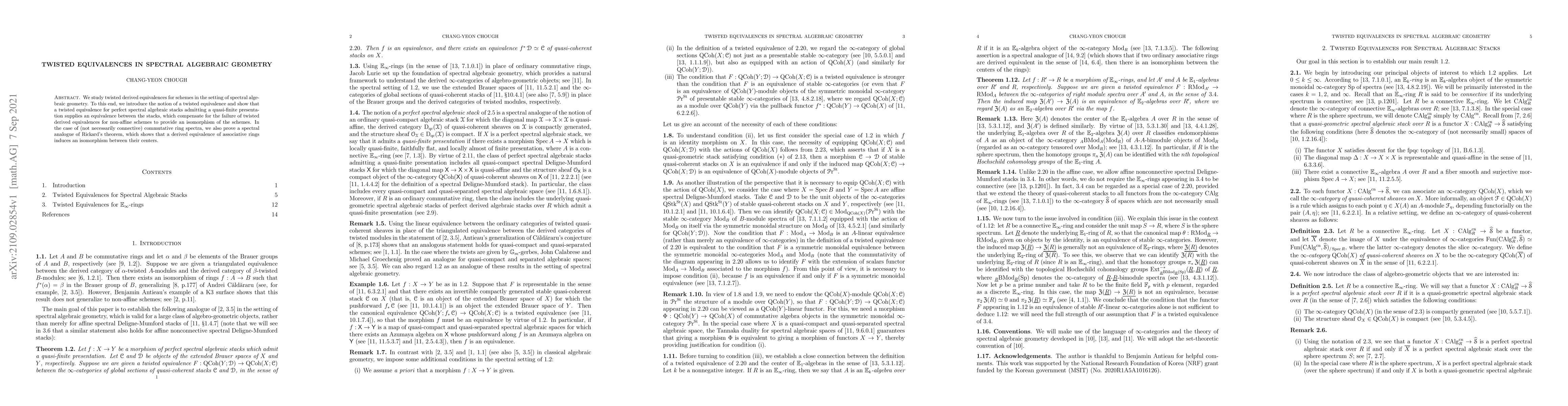 This paper introduces twisted equivalences in spectral algebraic geometry, demonstrating that they provide an equivalence for perfect spectral algebraic stacks, addressing the limitations of traditional derived equivalences. Additionally, it proves a spectral analogue of Rickard's theorem for commutative ring spectra, showing that derived equivalences induce isomorphisms between their centers.