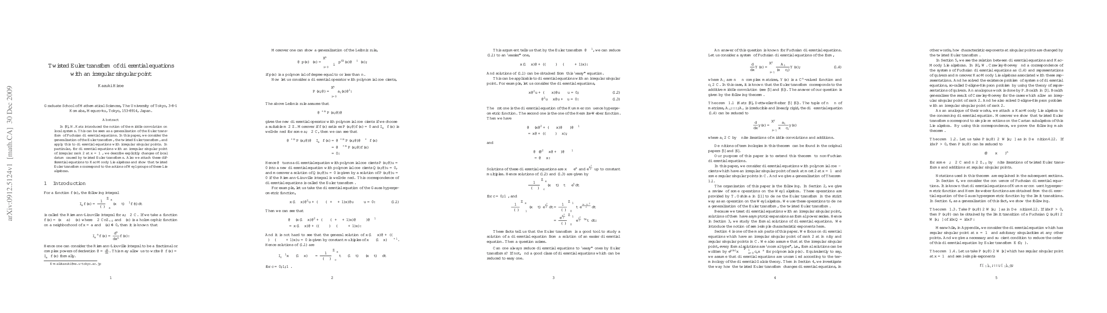This paper generalizes the Euler transform to the twisted Euler transform, applying it to differential equations with irregular singular points, specifically those of irregular rank 2 at $x=\infty$. It describes the explicit changes in local data due to these transforms and links them to the action of Weyl groups of Kac-Moody Lie algebras.