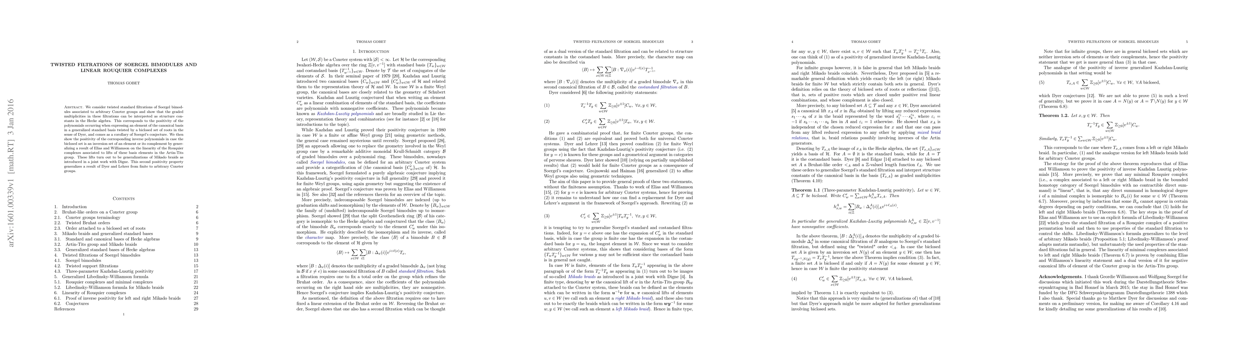 The paper shows that twisted filtrations of Soergel bimodules can be interpreted as structure constants in the Hecke algebra, corresponding to a positivity property of polynomials in Coxeter groups.