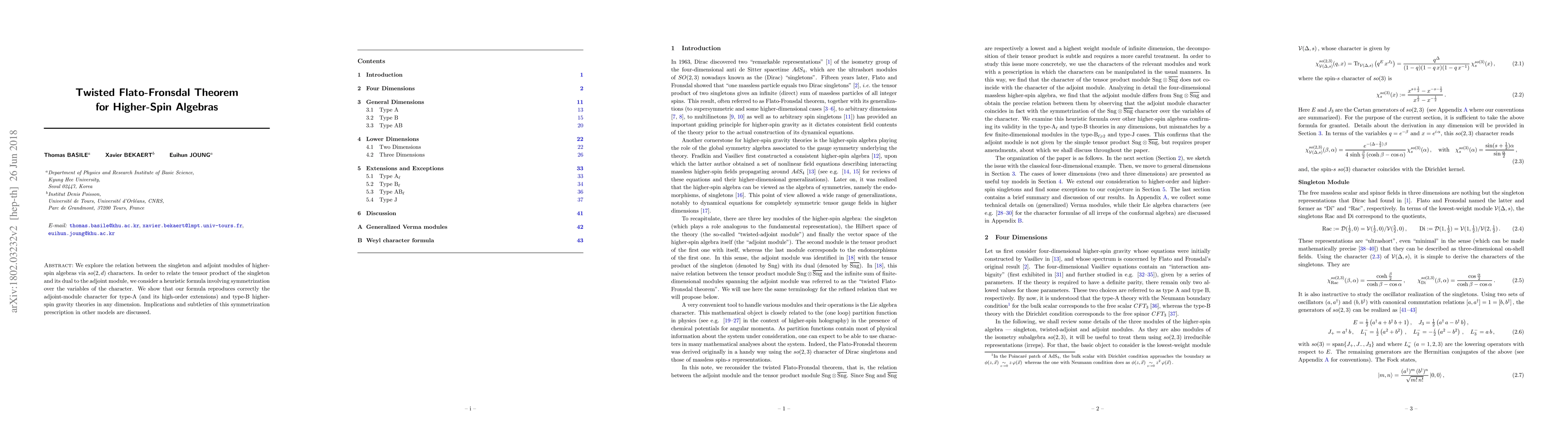 This paper establishes a formula to relate singleton and adjoint modules in higher-spin algebras using so(2,d) characters, demonstrating its correctness for type-A and type-B higher-spin gravity theories, and explores the implications of this symmetrization prescription in various models.