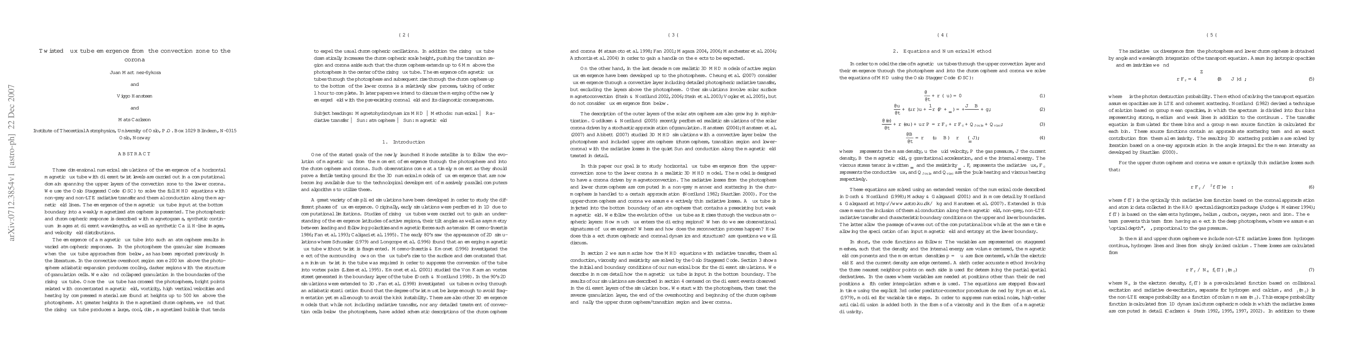 This paper uses 3D MHD simulations to study the emergence of twisted magnetic flux tubes from the convection zone to the corona, detailing the atmospheric responses, including granular size changes, cooling regions, and the formation of bright points and magnetized bubbles in the chromosphere. The process is shown to extend up to 6Mm above the photosphere over an hour.