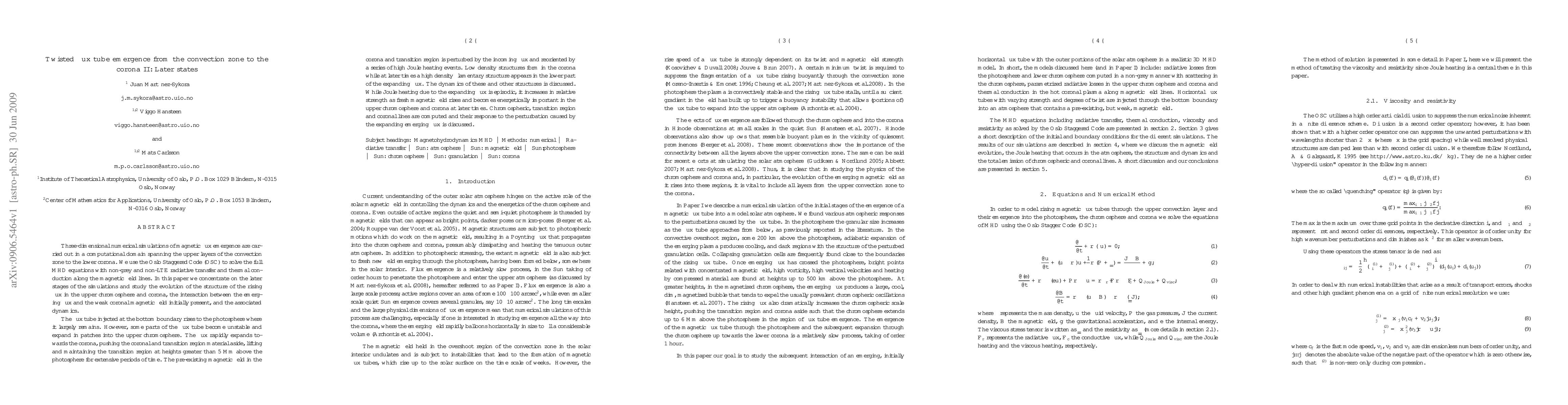 This paper examines the later stages of magnetic flux tube emergence from the convection zone to the corona using 3D MHD simulations. The flux tube rises to the photosphere, expands into the upper chromosphere, and rapidly extends into the corona, perturbing and reorienting the pre-existing magnetic field, leading to episodic Joule heating and the formation of low and high-density structures in the corona.