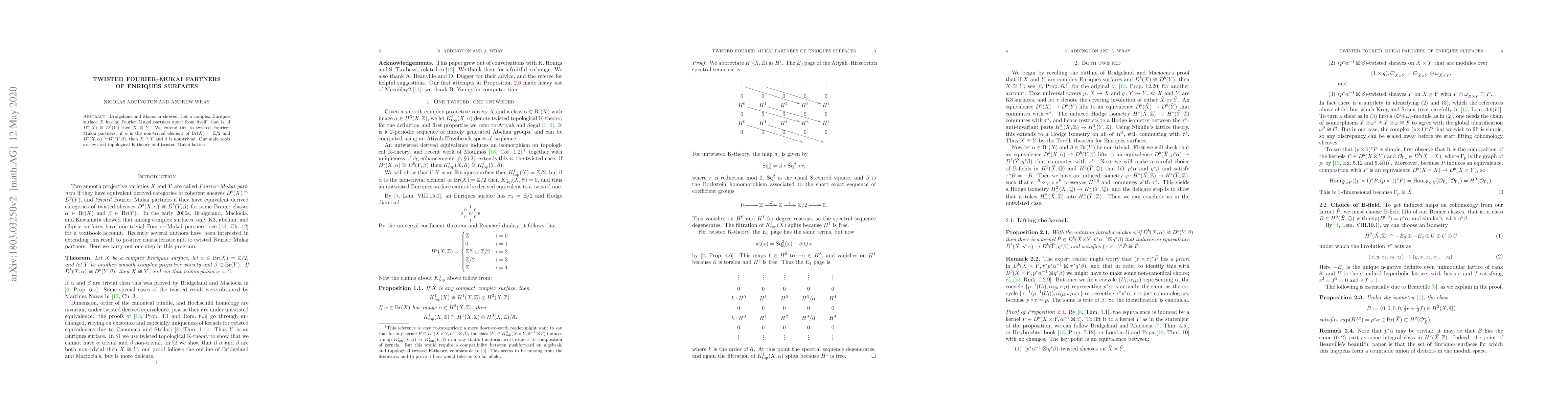 Summary: This paper extends the result that Enriques surfaces have no Fourier-Mukai partners, showing that they also have no twisted Fourier-Mukai partners except for themselves. The authors use twisted topological K-theory and twisted Mukai lattices as their main tools.