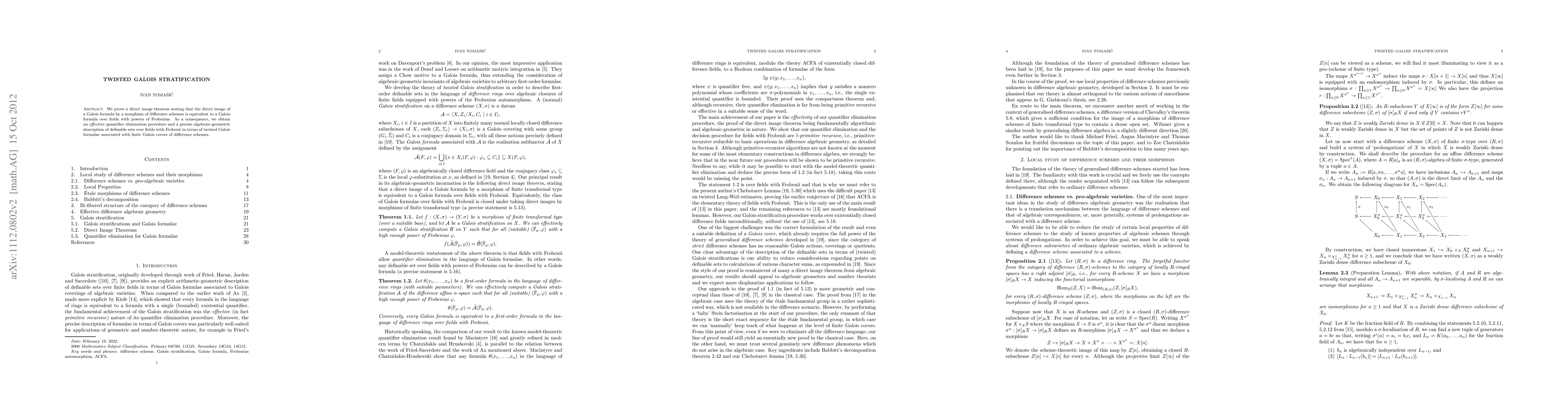 We prove a direct image theorem stating that the direct image of a Galois formula by a morphism of difference schemes is equivalent to a Galois formula over fields with powers of Frobenius. As a consequence, we obtain an effective quantifier elimination procedure and a precise algebraic-geometric description of definable sets over fields with Frobenii in terms of twisted Galois formulae associated with finite Galois covers of difference schemes.
