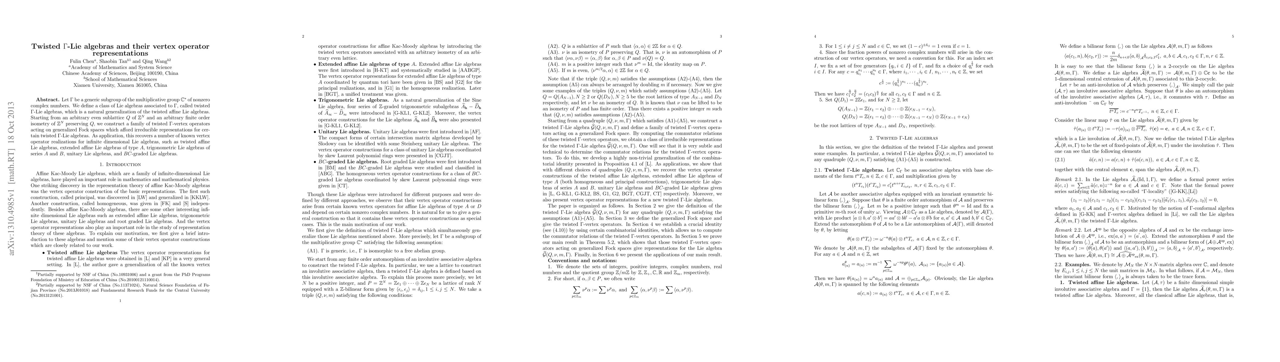 Let $\Gamma$ be a generic subgroup of the multiplicative group $\mathbb{C}^*$ of nonzero complex numbers. We define a class of Lie algebras associated to $\Gamma$, called twisted $\Gamma$-Lie algebras, which is a natural generalization of the twisted affine Lie algebras. Starting from an arbitrary even sublattice $Q$ of $\mathbb Z^N$ and an arbitrary finite order isometry of $\mathbb Z^N$ preserving $Q$, we construct a family of twisted $\Gamma$-vertex operators acting on generalized Fock spaces which afford irreducible representations for certain twisted $\Gamma$-Lie algebras. As application, this recovers a number of known vertex operator realizations for infinite dimensional Lie algebras, such as twisted affine Lie algebras, extended affine Lie algebras of type $A$, trigonometric Lie algebras of series $A$ and $B$, unitary Lie algebras, and $BC$-graded Lie algebras.