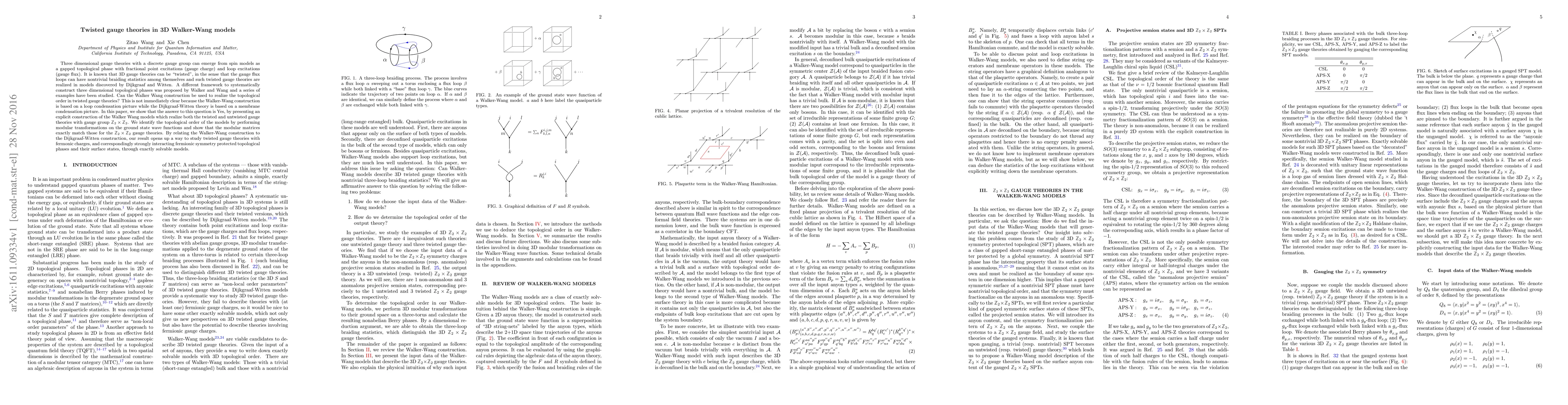 This paper demonstrates that the Walker-Wang construction can realize topological order in twisted gauge theories, specifically for the gauge group $\mathbb{Z}_2 \times \mathbb{Z}_2$. It shows that the modular matrices of the models match those of the corresponding twisted gauge theories, thereby linking the Walker-Wang and Dijkgraaf-Witten frameworks.