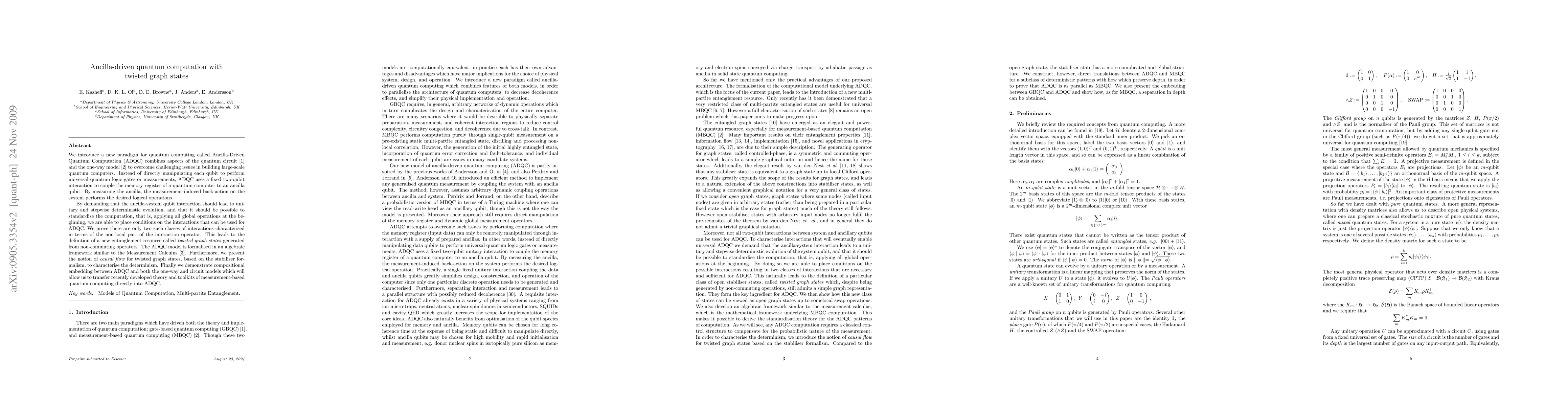 This paper introduces Ancilla-Driven Quantum Computation (ADQC), a novel quantum computing paradigm that leverages ancilla qubits to perform logical operations through measurement-induced back-action. It defines twisted graph states as a new entanglement resource for ADQC, proving the existence of two classes of interactions that meet the model's requirements and formalizing ADQC within an algebraic framework.