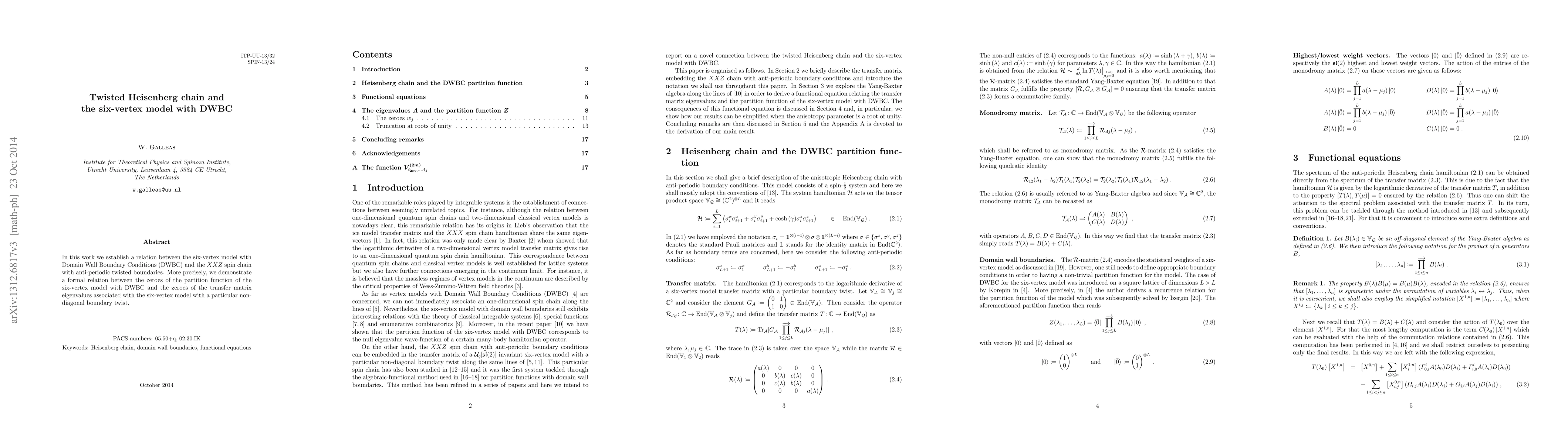 This paper establishes a connection between the six-vertex model with Domain Wall Boundary Conditions and the $XXZ$ spin chain with twisted boundaries, showing a formal link between the zeroes of their partition functions and transfer matrix eigenvalues.
