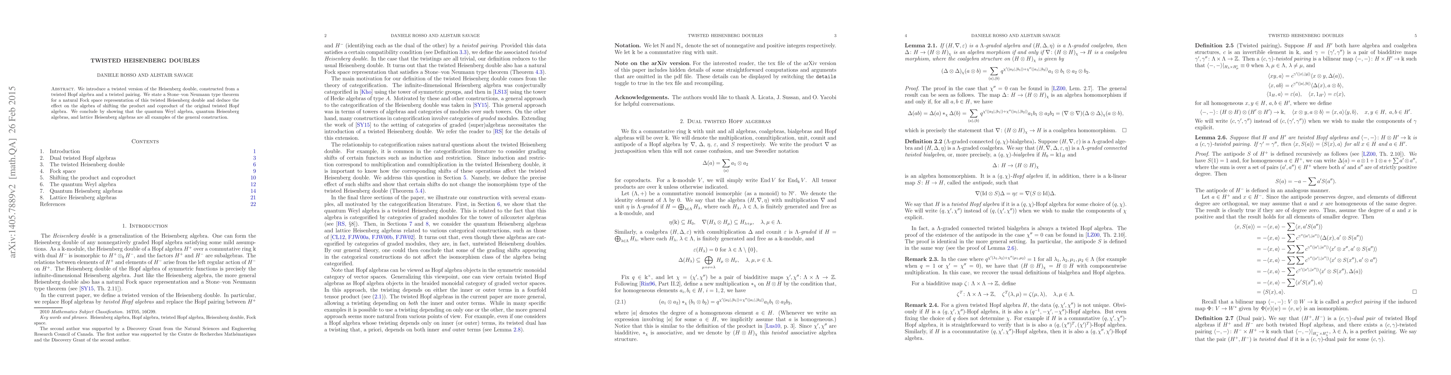 We introduce a twisted version of the Heisenberg double, constructed from a twisted Hopf algebra and a twisted Hopf pairing. We state a Stone--von Neumann type theorem for a natural Fock space representation of this twisted Heisenberg double and deduce the effect on the algebra of shifting the product and coproduct of the original twisted Hopf algebra. We conclude by showing that the quantum Weyl algebra, quantum Heisenberg algebras, and lattice Heisenberg algebras are all examples of the general construction.
