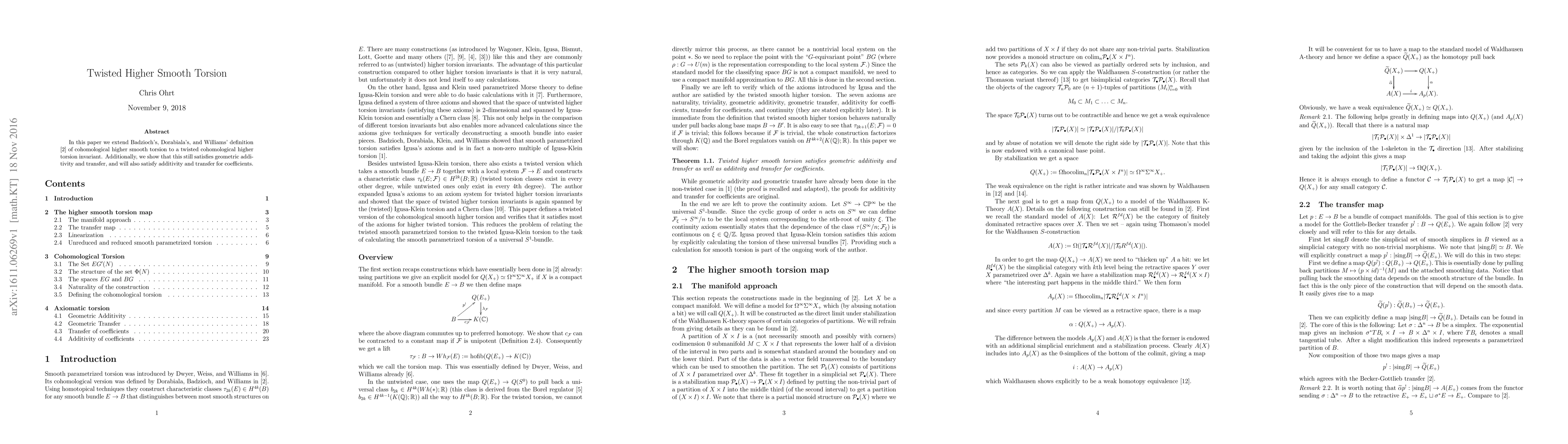 This paper extends the definition of cohomological higher smooth torsion to a twisted version, maintaining geometric additivity and transfer properties, and ensuring these properties hold for coefficient additivity and transfer as well.