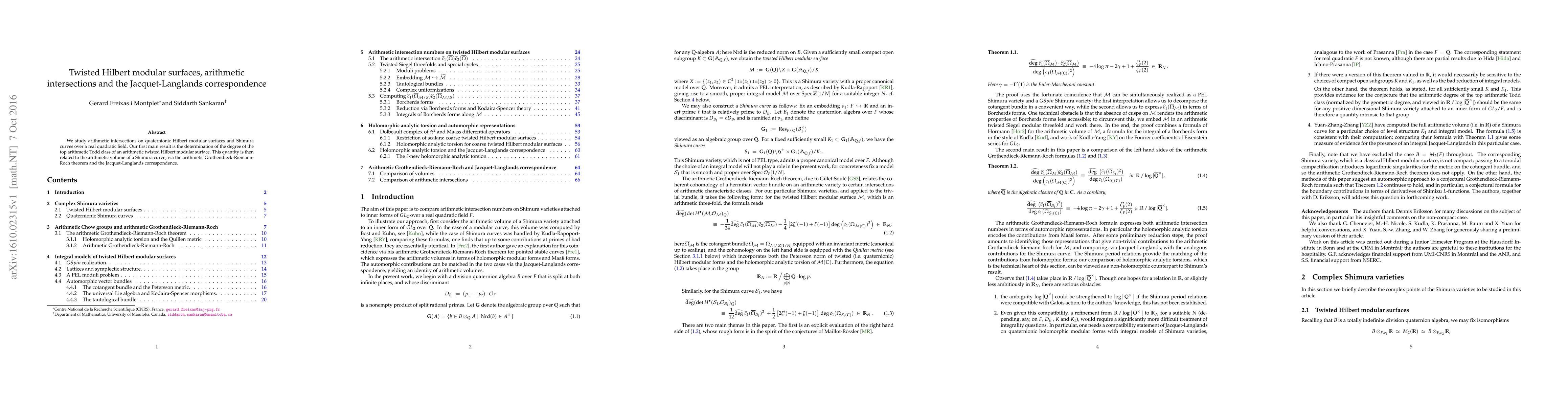This paper investigates arithmetic intersections on twisted Hilbert modular surfaces and Shimura curves, determining the degree of the top arithmetic Todd class of such surfaces. It connects this degree to the arithmetic volume of Shimura curves through the arithmetic Grothendieck-Riemann-Roch theorem and the Jacquet-Langlands correspondence.