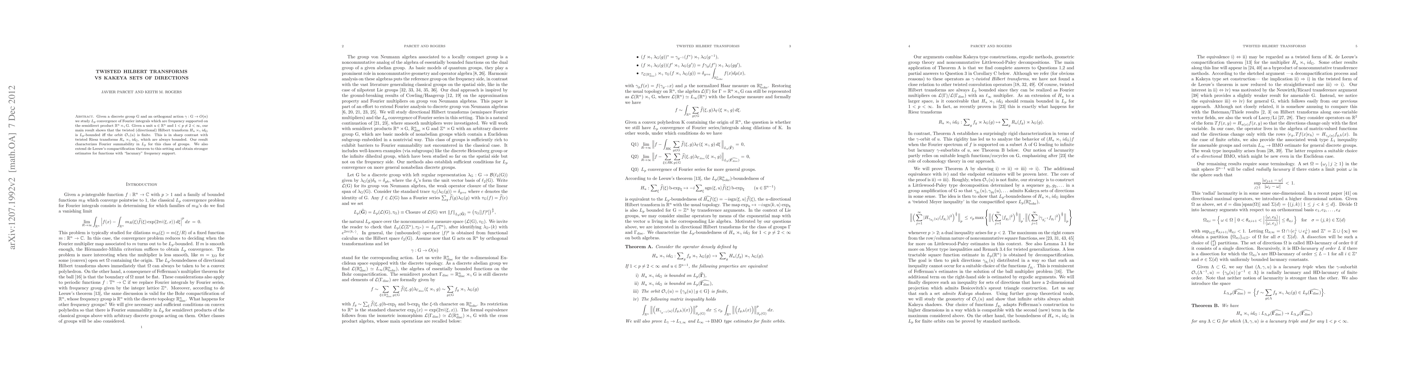 Given a discrete group $\G$ and an orthogonal action $\gamma: \G \to O(n)$ we study $L_p$ convergence of Fourier integrals which are frequency supported on the semidirect product $\R^n \rtimes_\gamma \G$. Given a unit $u \in \R^n$ and $1 < p \neq 2 < \infty$, our main result shows that the twisted (directional) Hilbert transform $H_u \rtimes_\gamma id_\G$ is $L_p$-bounded iff the orbit $\mathcal{O}_\gamma(u)$ is finite. This is in sharp contrast with twisted Riesz transforms $R_u \rtimes_\gamma id_\G$, which are always bounded. Our result characterizes Fourier summability in $L_p$ for this class of groups. We also extend de Leeuw's compactification theorem to this setting and obtain stronger estimates for functions with "lacunary" frequency support.