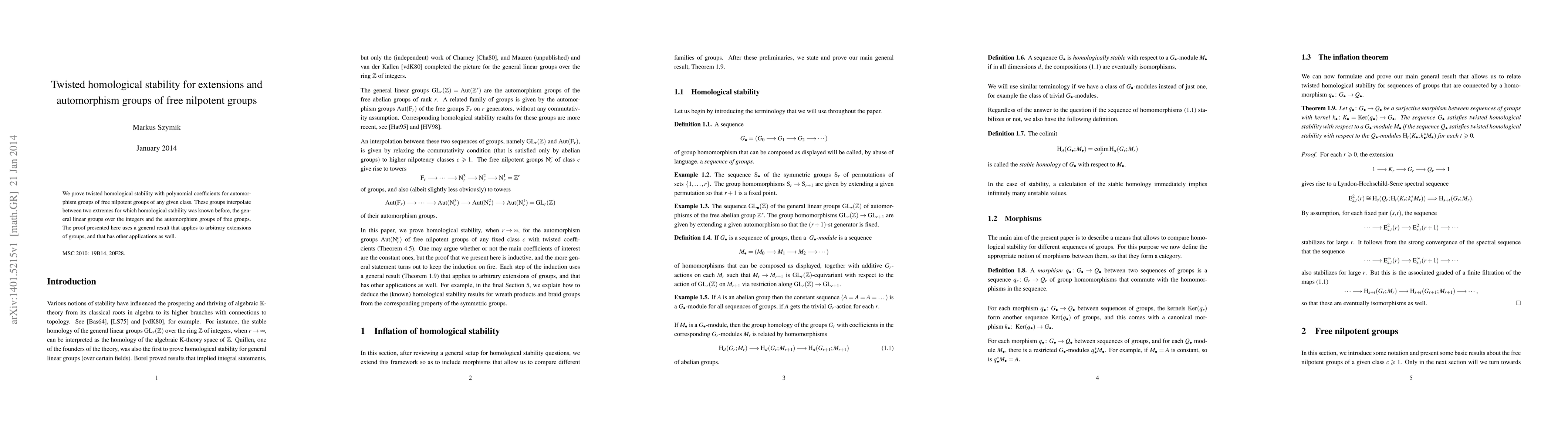 We prove twisted homological stability with polynomial coefficients for automorphism groups of free nilpotent groups of any given class. These groups interpolate between two extremes for which homological stability was known before, the general linear groups over the integers and the automorphism groups of free groups. The proof presented here uses a general result that applies to arbitrary extensions of groups, and that has other applications as well.