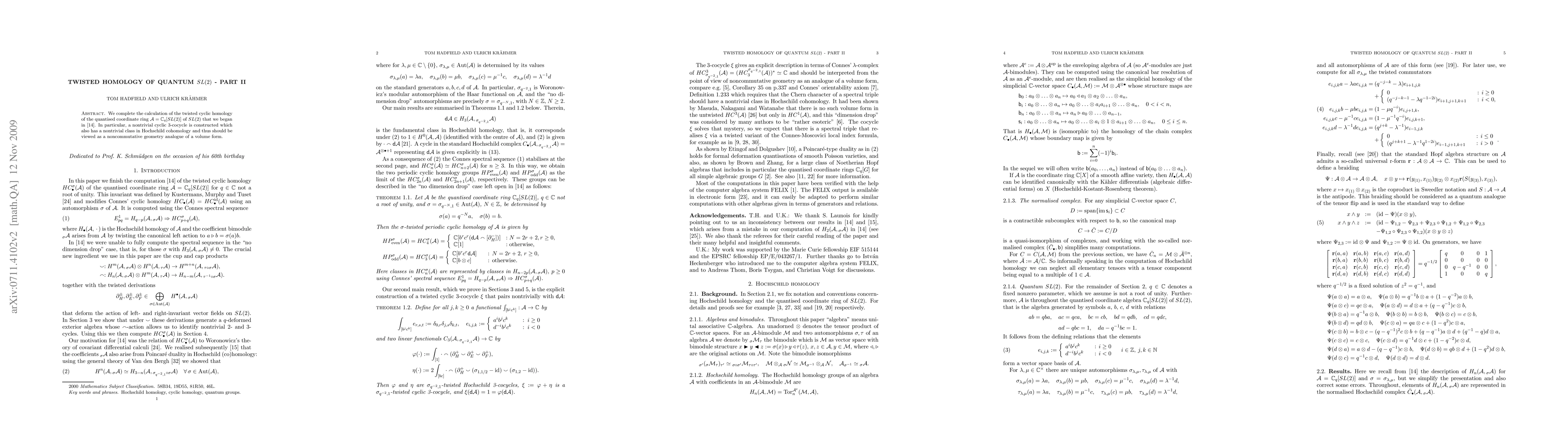 We complete the calculation of the twisted cyclic homology of the quantised coordinate ring of SL(2) that we began in math.QA/0405249. In particular, a nontrivial cyclic 3-cocycle is constructed which also has a nontrivial class in Hochschild cohomology and thus should be viewed as a noncommutative geometry analogue of a volume form.