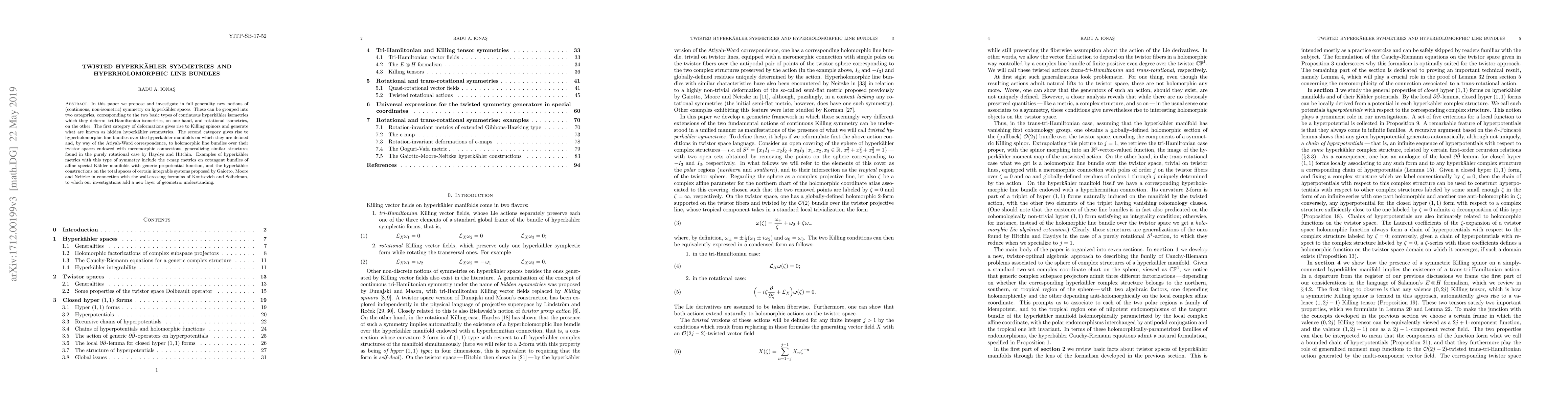 This paper introduces new types of symmetries on hyperkähler spaces, categorizing them into tri-Hamiltonian and rotational deformations. It explores the implications of these symmetries, including the emergence of hidden hyperkähler symmetries and hyperholomorphic line bundles, extending the geometric understanding of certain hyperkähler metrics and integrable systems.