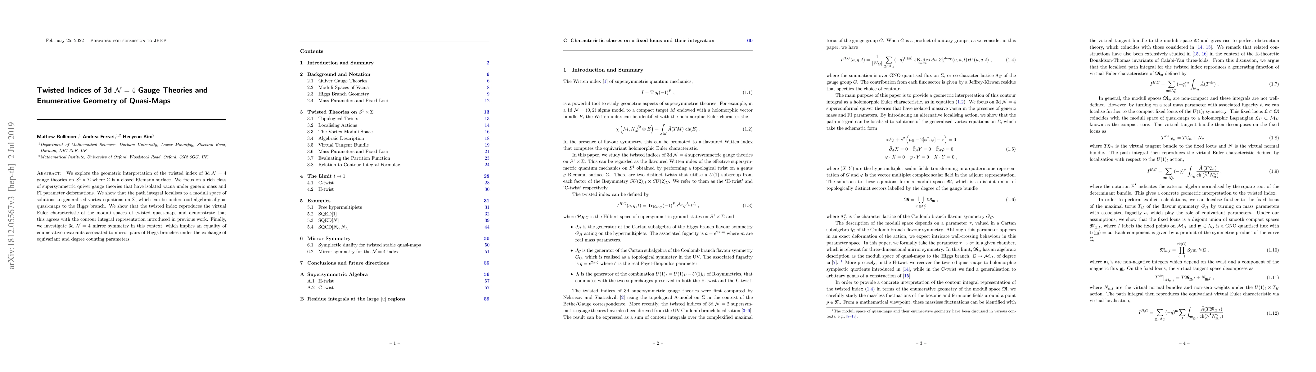 This paper investigates the twisted index of 3d ${\mathcal N} = 4$ gauge theories on $S^1\times \Sigma$, demonstrating its equivalence to the virtual Euler characteristic of moduli spaces of quasi-maps. It also explores 3d ${\mathcal N} = 4$ mirror symmetry through enumerative invariants associated with mirror pairs of Higgs branches.