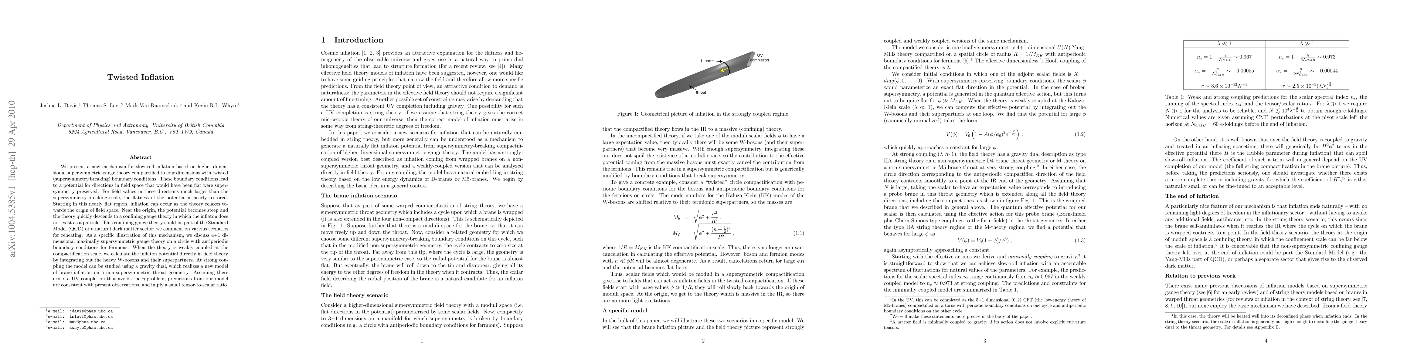 We present a new mechanism for slow-roll inflation based on higher dimensional supersymmetric gauge theory compactified to four dimensions with twisted (supersymmetry breaking) boundary conditions. These boundary conditions lead to a potential for directions in field space that would have been flat were supersymmetry preserved. For field values in these directions much larger than the supersymmetry-breaking scale, the flatness of the potential is nearly restored. Starting in this nearly flat region, inflation can occur as the theory relaxes towards the origin of field space. Near the origin, the potential becomes steep and the theory quickly descends to a confining gauge theory in which the inflaton does not exist as a particle. This confining gauge theory could be part of the Standard Model (QCD) or a natural dark matter sector; we comment on various scenarios for reheating. As a specific illustration of this mechanism, we discuss 4+1 dimensional maximally supersymmetric gauge theory on a circle with antiperiodic boundary conditions for fermions. When the theory is weakly coupled at the compactification scale, we calculate the inflaton potential directly in field theory by integrating out the heavy W-bosons and their superpartners. At strong coupling the model can be studied using a gravity dual, which realizes a new model of brane inflation on a non-supersymmetric throat geometry. Assuming there exists a UV completion that avoids the eta-problem, predictions from our model are consistent with present observations, and imply a small tensor-to-scalar ratio.