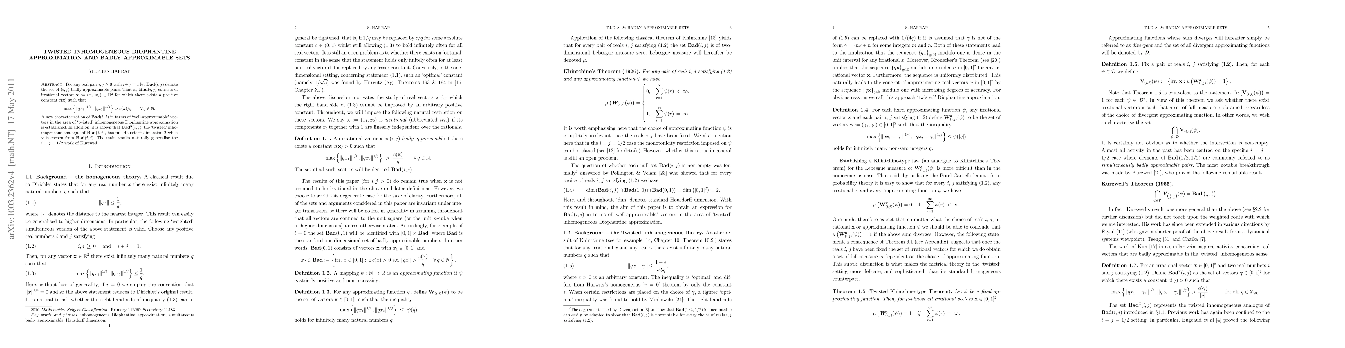 For any real pair i, j geq 0 with i+j=1 let Bad(i, j) denote the set of (i, j)-badly approximable pairs. That is, Bad(i, j) consists of irrational vectors x:=(x_1, x_2) in R^2 for which there exists a positive constant c(x) such that max {||qx_1||^(-i), ||qx_2||^(-j)} > c(x)/q for all q in N. A new characterization of the set Bad(i, j) in terms of `well-approximable' vectors in the area of 'twisted' inhomogeneous Diophantine approximation is established. In addition, it is shown that Bad^x(i, j), the `twisted' inhomogeneous analogue of Bad(i, j), has full Hausdorff dimension 2 when x is chosen from the set Bad(i, j). The main results naturally generalise the i=j=1/2 work of Kurzweil.