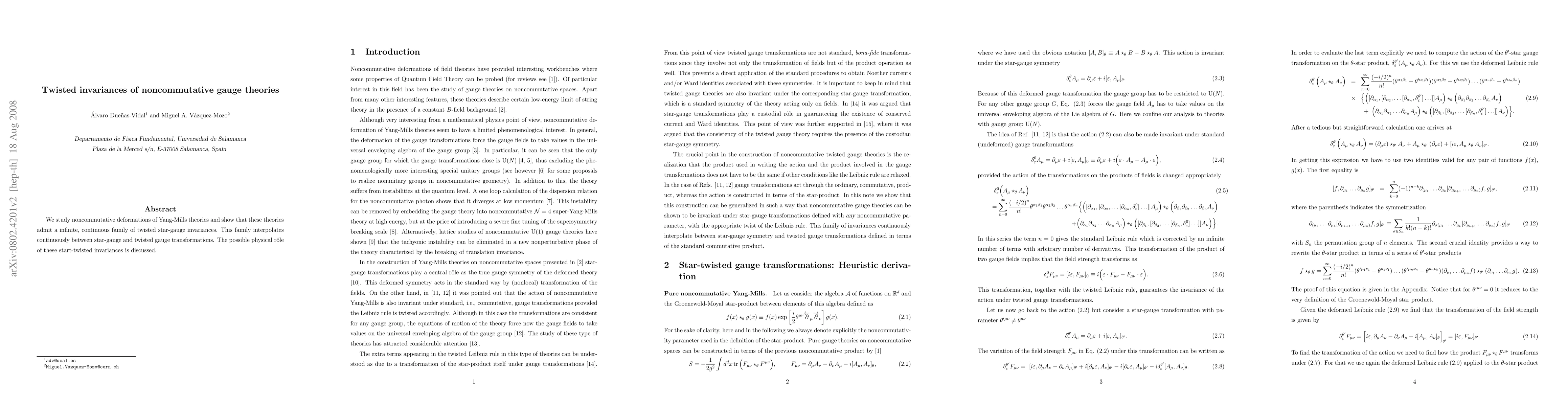 We study noncommutative deformations of Yang-Mills theories and show that these theories admit a infinite, continuous family of twisted star-gauge invariances. This family interpolates continuously between star-gauge and twisted gauge transformations. The possible physical role of these start-twisted invariances is discussed.