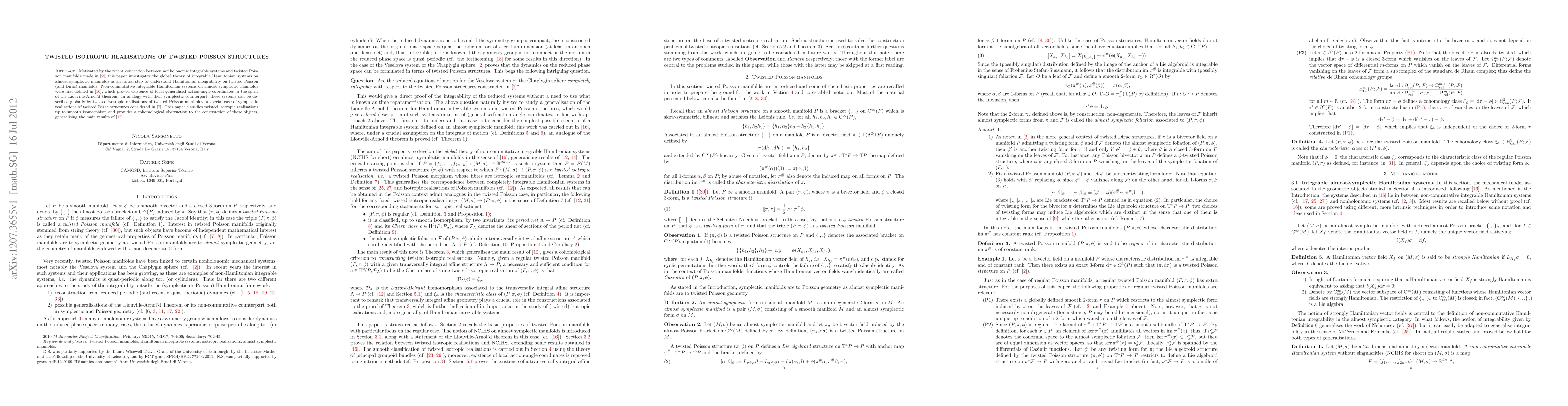 This paper explores integrable Hamiltonian systems on almost symplectic manifolds through the lens of twisted Poisson structures, classifying twisted isotropic realisations and identifying cohomological obstructions to their construction. The study extends previous work on local generalised action-angle coordinates to the global theory.