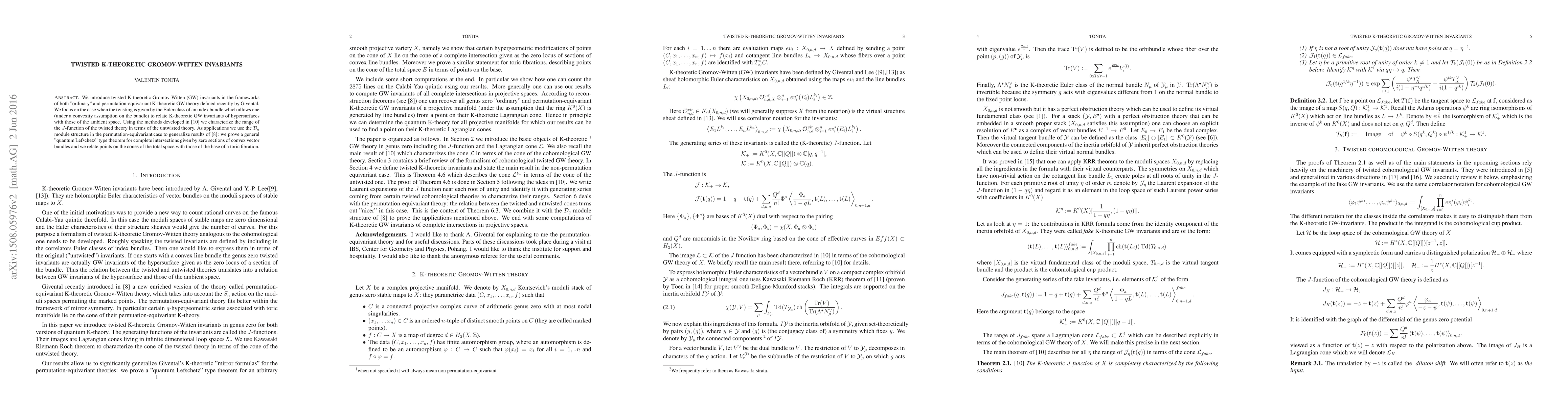 This paper introduces twisted K-theoretic Gromov-Witten invariants, characterizing the range of the $J$-function in both ordinary and permutation-equivariant frameworks. It applies the D_q module structure to prove a "quantum Lefschetz" theorem and relate points in toric fibrations.