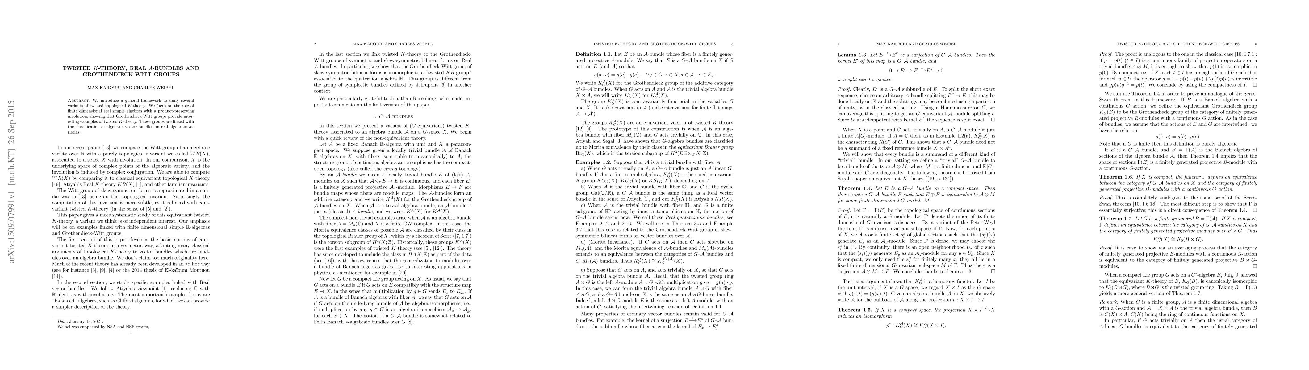 Summary: This paper unifies various forms of twisted topological K-theory through a framework emphasizing real $\mathcal{A}$-bundles, with a focus on Grothendieck-Witt groups as significant examples. These groups relate to the classification of algebraic vector bundles on real algebraic varieties.