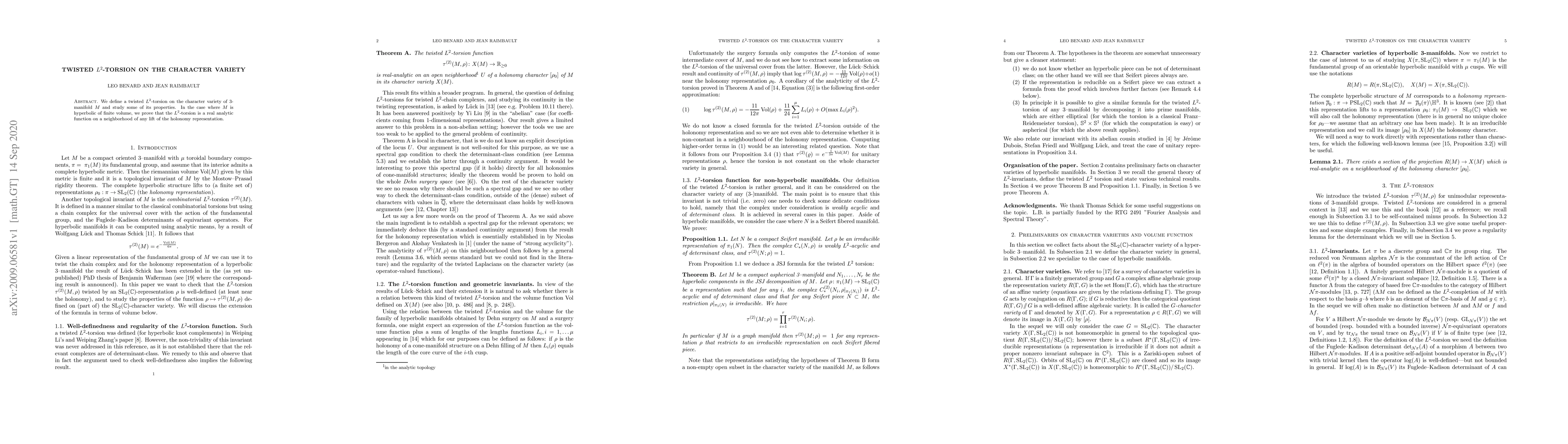 This paper introduces a twisted $L^2$-torsion on the character variety of 3-manifolds and examines its properties. For hyperbolic 3-manifolds of finite volume, the authors demonstrate that the $L^2$-torsion is a real analytic function near any lift of the holonomy representation.