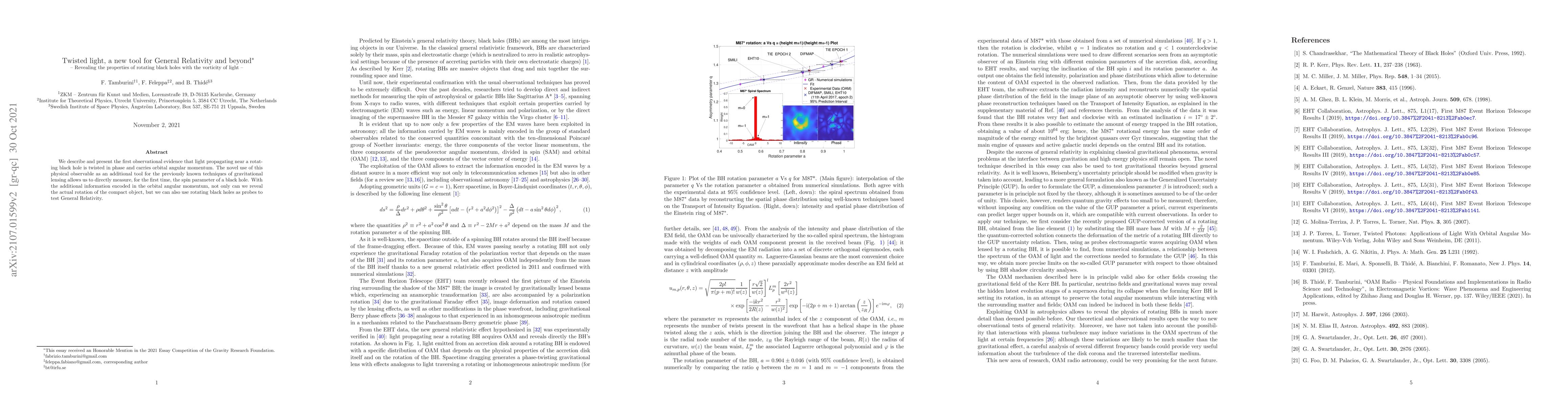 We describe and present the first observational evidence that light propagating near a rotating black hole is twisted in phase and carries orbital angular momentum. The novel use of this physical observable as an additional tool for the previously known techniques of gravitational lensing allows us to directly measure, for the first time, the spin parameter of a black hole. With the additional information encoded in the orbital angular momentum, not only can we reveal the actual rotation of the compact object, but we can also use rotating black holes as probes to test General Relativity.