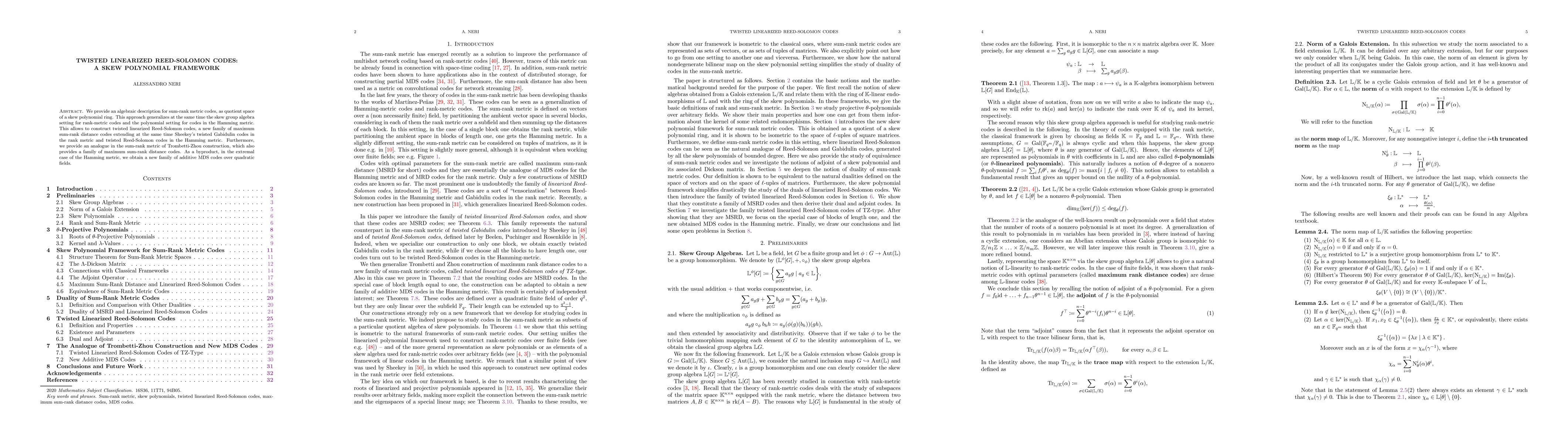 This paper introduces an algebraic framework for sum-rank metric codes using skew polynomial rings, generalizing existing rank-metric and Hamming metric code constructions. It constructs new twisted linearized Reed-Solomon codes with maximum sum-rank distance, extending both Sheekey's twisted Gabidulin codes and traditional Reed-Solomon codes.