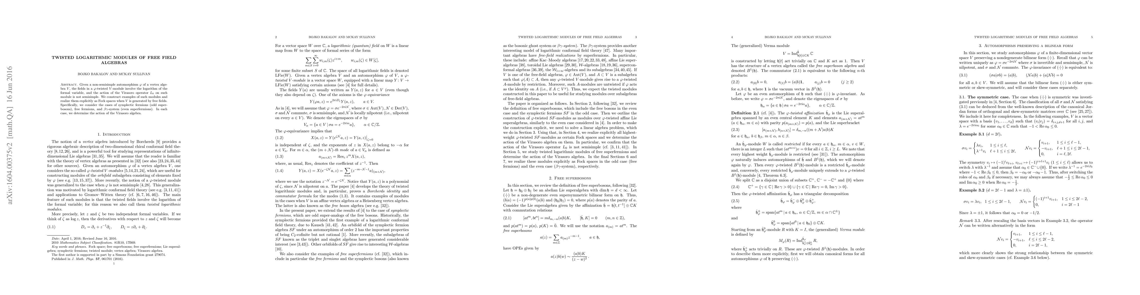 Given a non-semisimple automorphism $\varphi$ of a vertex algebra $V$, the fields in a $\varphi$-twisted $V$-module involve the logarithm of the formal variable, and the action of the Virasoro operator $L_0$ on such module is not semisimple. We construct examples of such modules and realize them explicitly as Fock spaces when $V$ is generated by free fields. Specifically, we consider the cases of symplectic fermions (odd superbosons), free fermions, and $\beta\gamma$-system (even superfermions). In each case, we determine the action of the Virasoro algebra.
