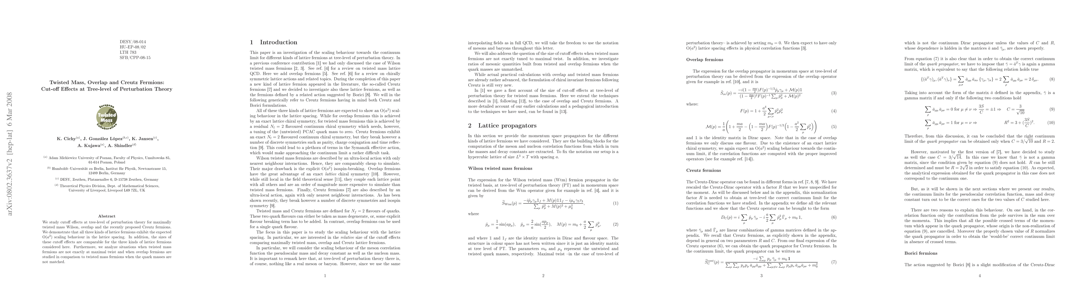 This paper investigates cutoff effects at tree-level perturbation theory for maximally twisted mass, overlap, and Creutz fermions, showing they all exhibit O(a^2) scaling behavior. The study also compares these effects when fermions are not at maximal twist, highlighting comparable sizes of cutoff effects across the different fermion types.