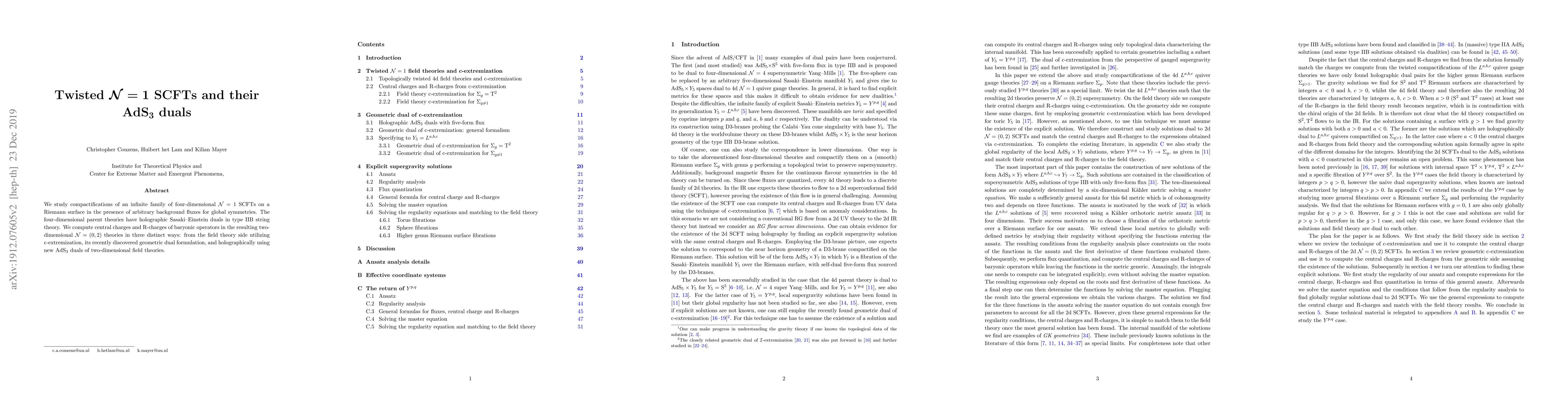 We study compactifications of an infinite family of four-dimensional $\mathcal{N}=1$ SCFTs on a Riemann surface in the presence of arbitrary background fluxes for global symmetries. The four-dimensional parent theories have holographic Sasaki-Einstein duals in type IIB string theory. We compute central charges and R-charges of baryonic operators in the resulting two-dimensional $\mathcal{N}=(0,2)$ theories in three distinct ways: from the field theory side utilizing c-extremization, its recently discovered geometric dual formulation, and holographically using new AdS$_3$ duals of two-dimensional field theories.