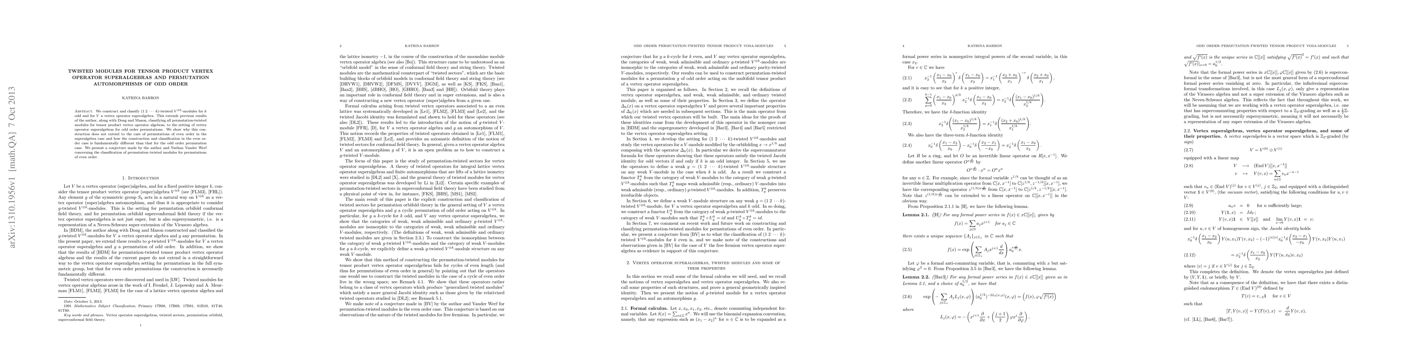 This paper constructs and classifies $(1 \; 2\; \cdots \; k)$-twisted $V^{\otimes k}$-modules for odd $k$ in the context of vertex operator superalgebras. It extends prior work to superalgebras and contrasts the construction's failure for even permutations, proposing a conjecture for even permutation twisted modules.