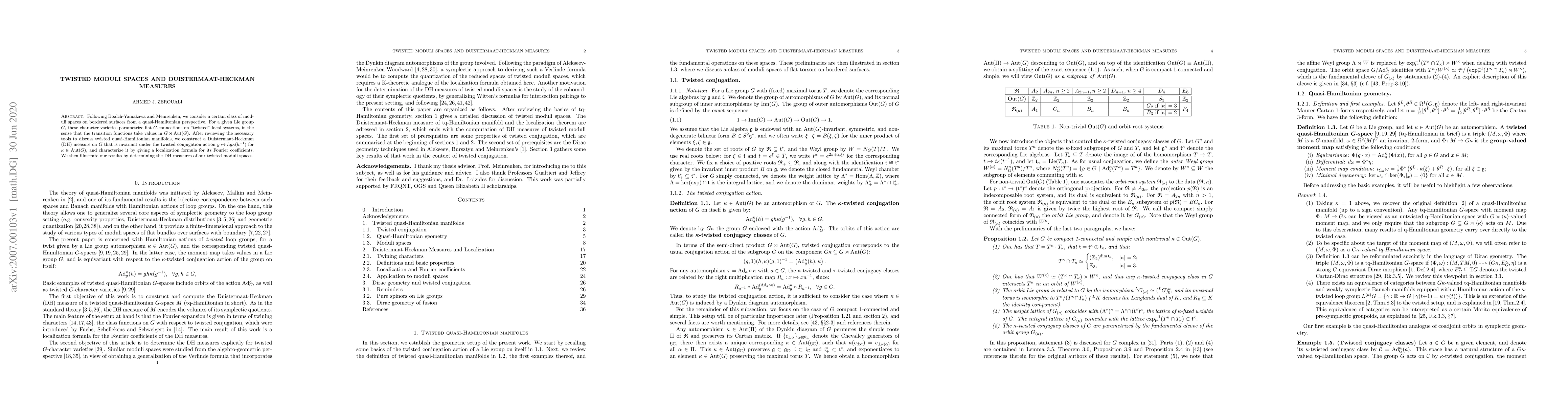 This paper explores quasi-Hamiltonian moduli spaces on bordered surfaces for a given Lie group $G$, focusing on twisted character varieties. It constructs a Duistermaat-Heckman measure invariant under twisted conjugation and provides a localization formula for its Fourier coefficients, illustrating the results with specific examples.