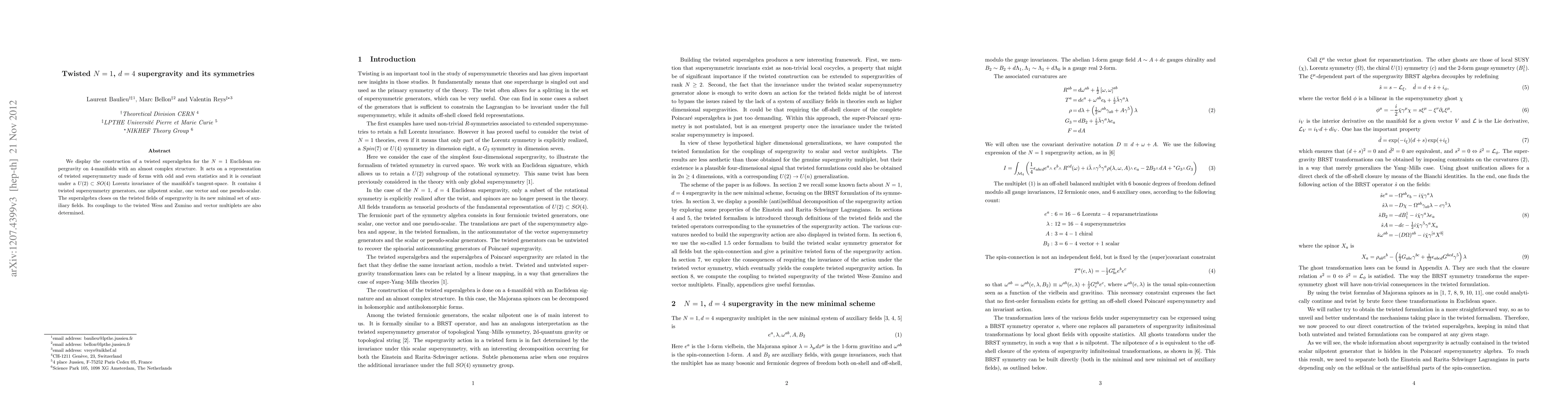 Researchers constructed a new framework for N=1 supergravity on 4-manifolds, incorporating twisted supersymmetry with four generators and auxiliary fields, which provides a more detailed understanding of its symmetries and couplings.