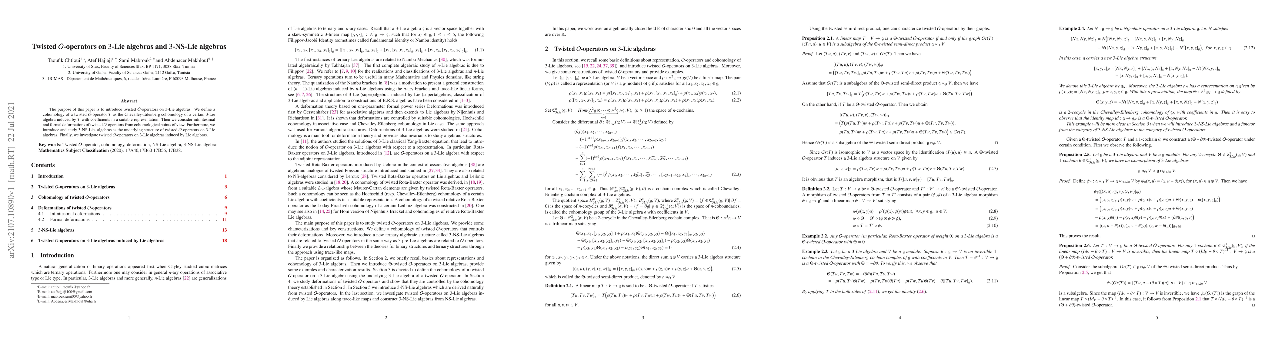 The purpose of this paper is to introduce twisted $\mathcal{O}$-operators on $3$-Lie algebras. We define a cohomology of a twisted $\mathcal{O}$-operator $T$ as the Chevalley-Eilenberg cohomology of a certain $3$-Lie algebra induced by $T$ with coefficients in a suitable representation. Then we consider infinitesimal and formal deformations of twisted $\mathcal{O}$-operators from cohomological points of view. Furthermore, we introduce and study $3$-NS-Lie-algebras as the underlying structure of twisted $\mathcal{O}$-operators on $3$-Lie algebras. Finally, we investigate twisted $\mathcal{O}$-operators on $3$-Lie algebras induced by Lie algebras.