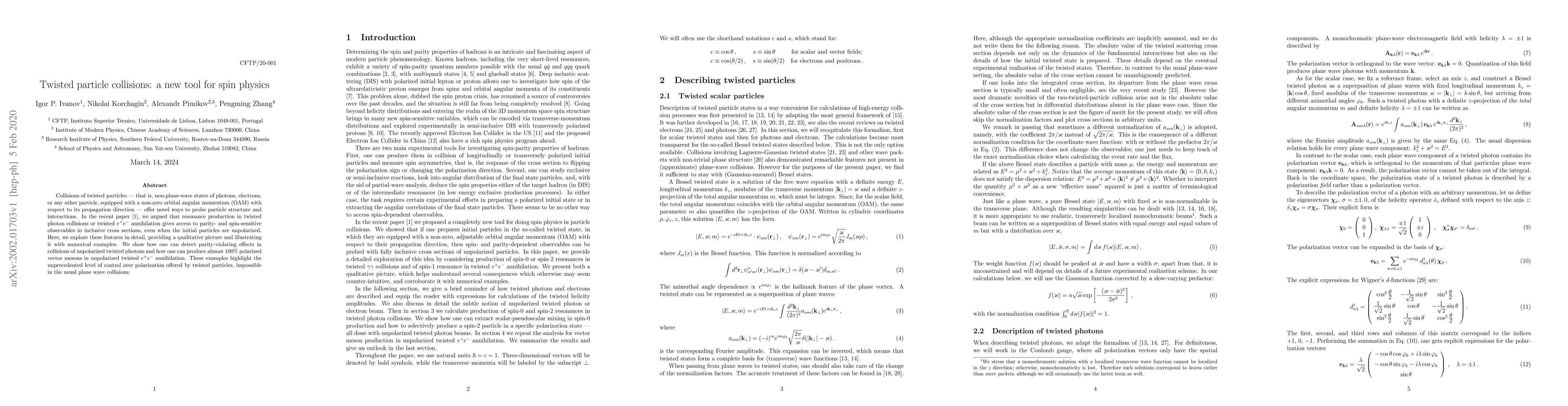 This research explores the use of twisted particles, carrying orbital angular momentum, in collisions for probing particle structure and interactions. It demonstrates that unpolarized twisted particles can reveal parity- and spin-sensitive observables, enabling detection of parity-violating effects and production of nearly 100% polarized vector mesons, showcasing unparalleled control over polarization compared to traditional plane wave collisions.